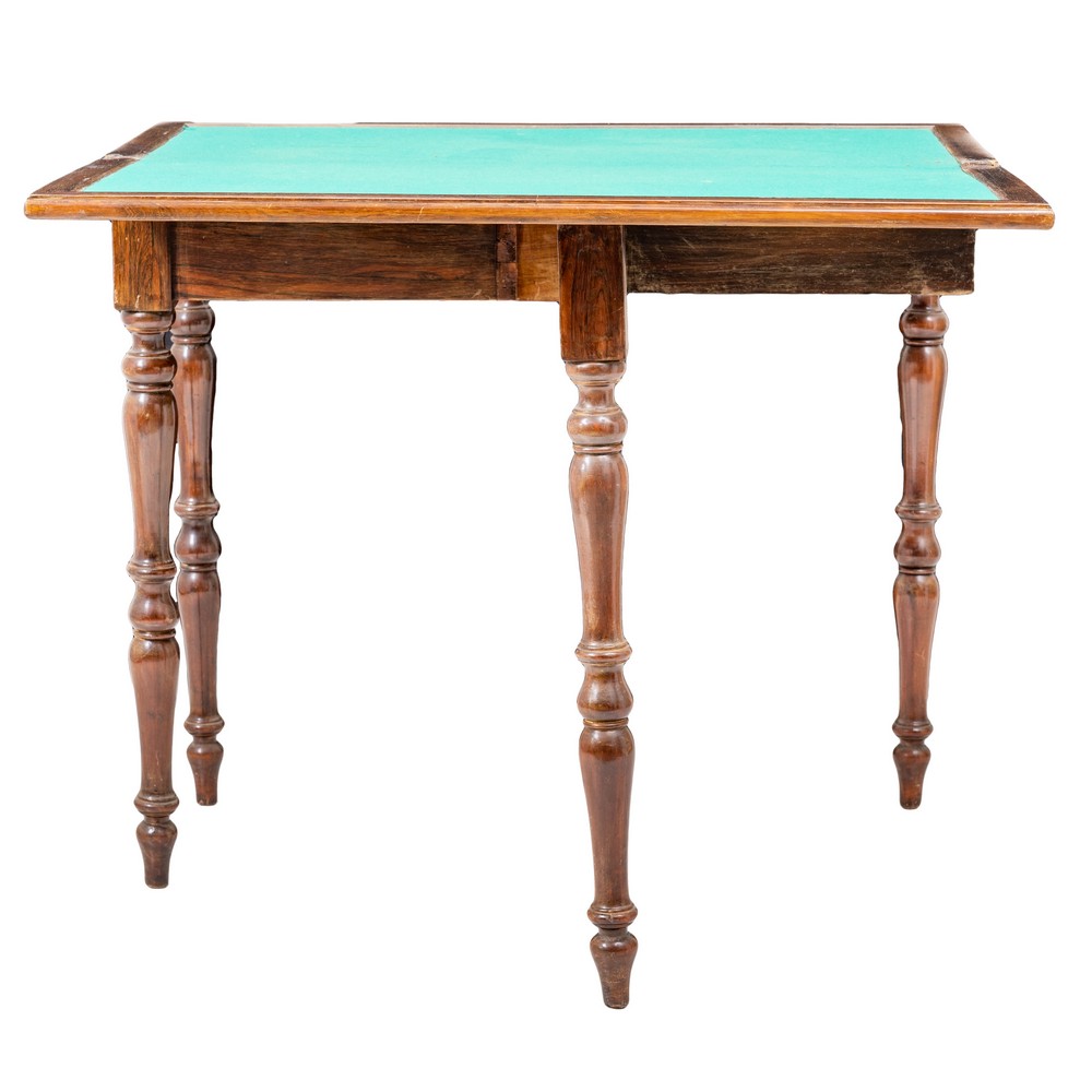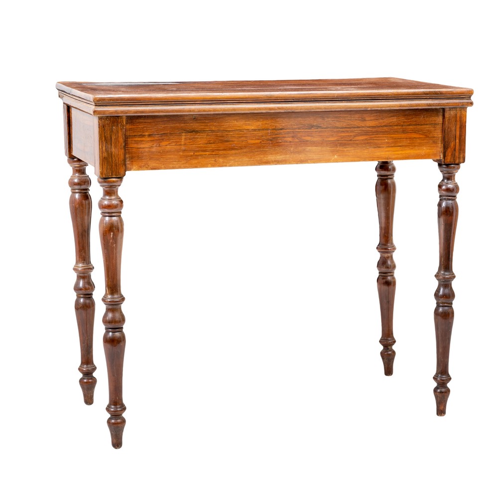 Tavolo da gioco a libro in legno di palissandro con cassetto laterale.