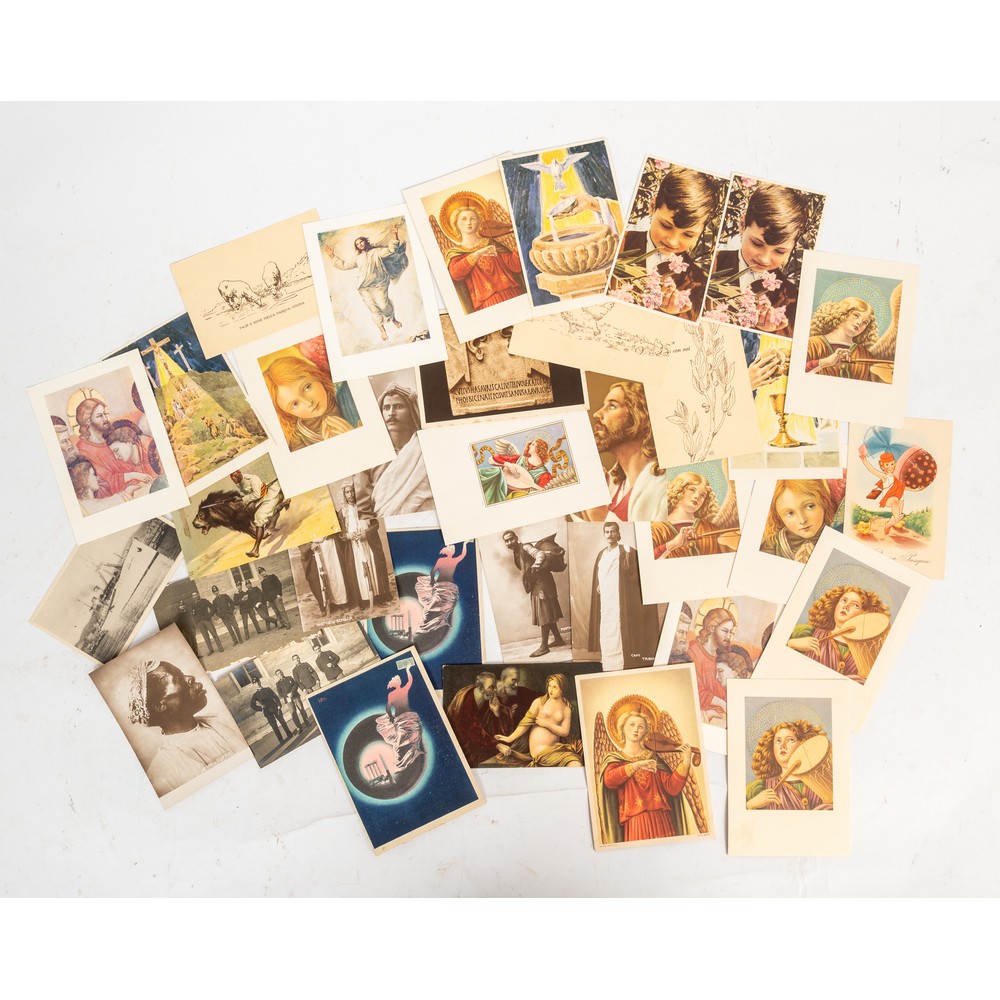 TRENTAQUATTRO FOTOCARTOLINE in perfette condizioni, in bianco e nero e a colori degli anni 30 e 40 del ‘900. Soggetti vari.