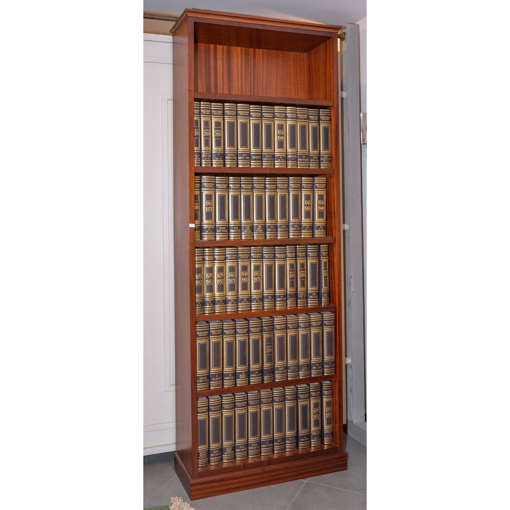LIBRERIA APPOSITAMENTE REALIZZATA CON 57 VOLUMI DELLA ENCICLOPEDIA TRECCANI. 1949 – 2000. La storica enciclopedia dell’Istituto della Enciclopedia Italiana – Treccani ormai parte della cultura italiana. Enciclopedia completa di tutte le Appendici fino al 2000.