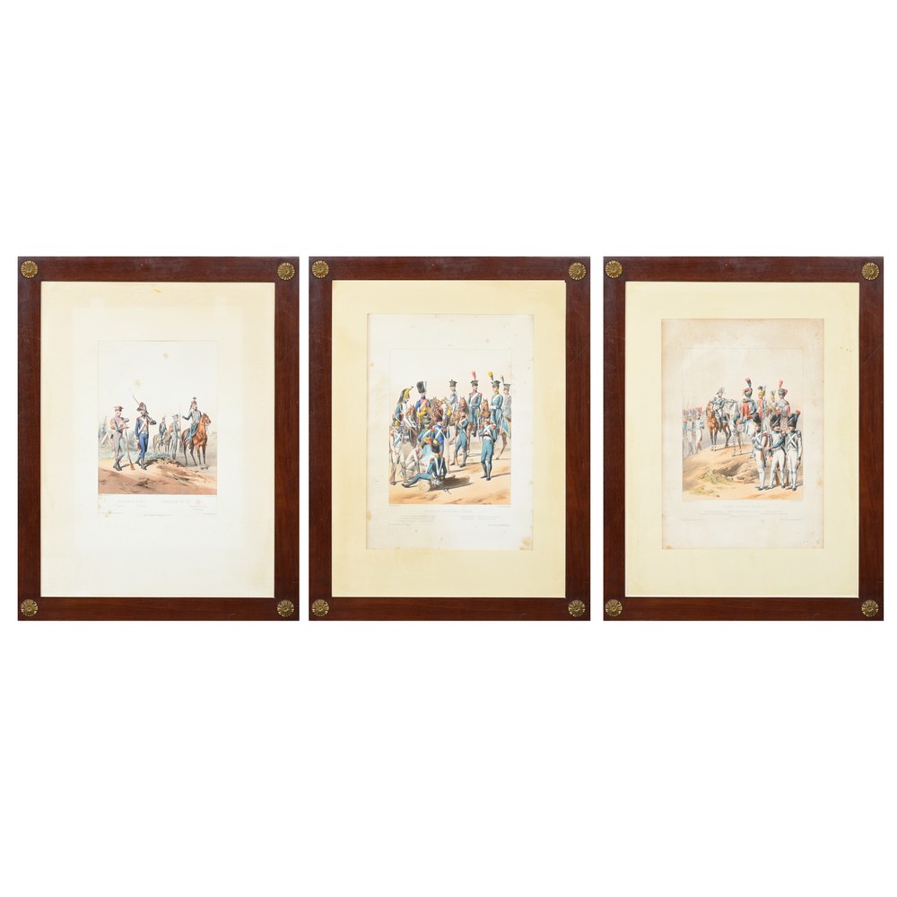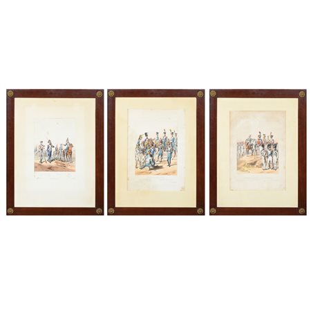 raffiguranti "Scene militari francesi", entro cornici in mogano.
