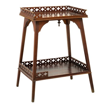 Tavolino a vassoio in legno di faggio, verniciato a mogano.