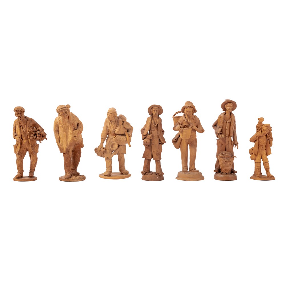 SETTE SCULTURE in terracotta raffigurante i mestieri (mancanze e restauri).