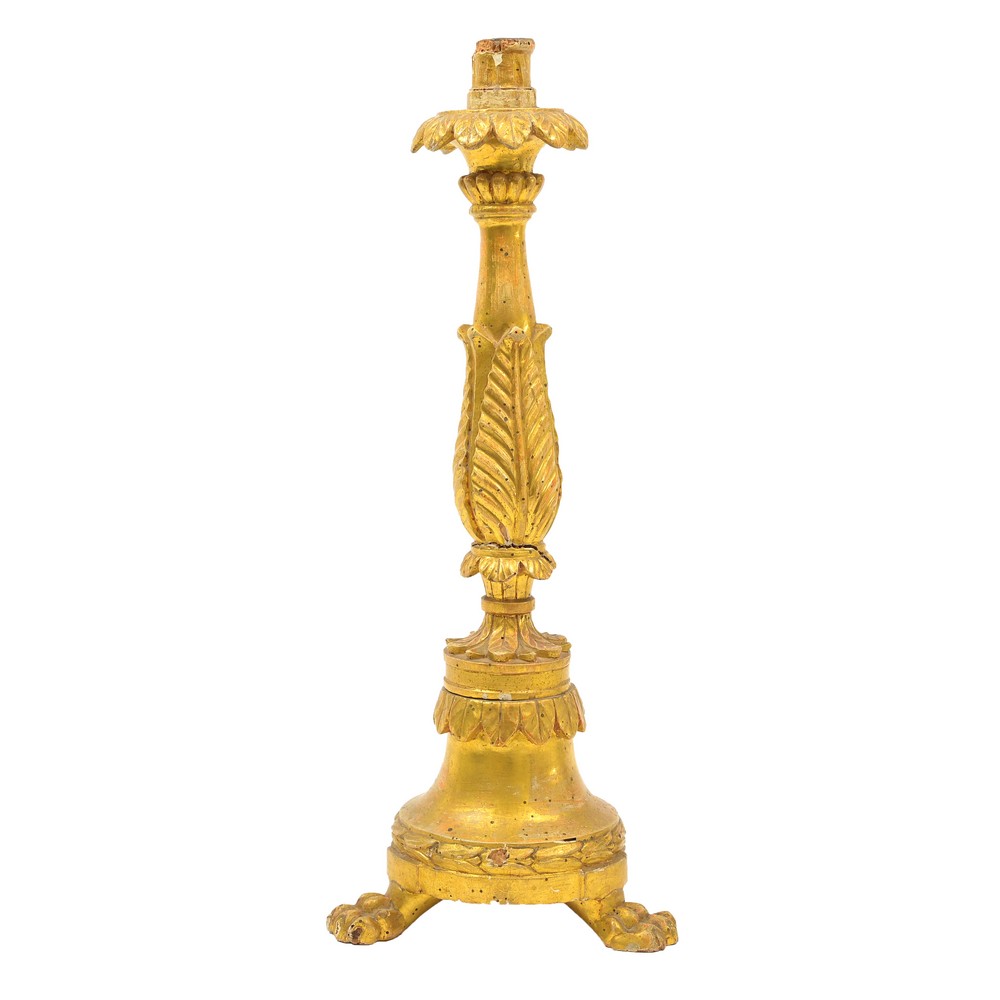 Candeliere Luigi XVI in legno dorato ad oro zecchino (usure).