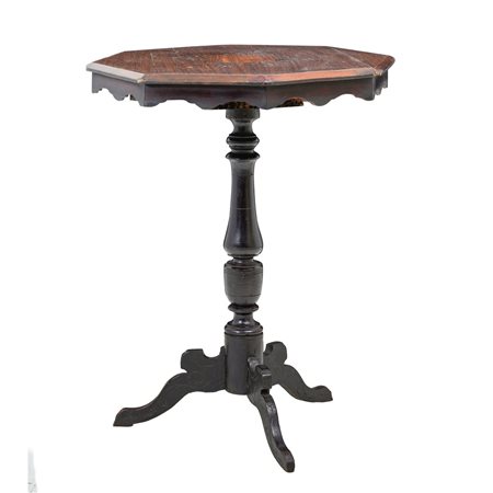 Tavolino Luigi Filippo di forma ottagonale in palissandro. Fusto a colonna e piede tripode in legno di noce.