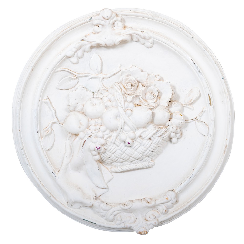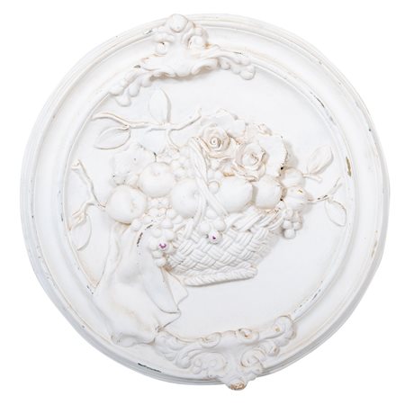 MEDAGLIONE in gesso lavorato a bassorilievo raffigurante cesto di frutta.