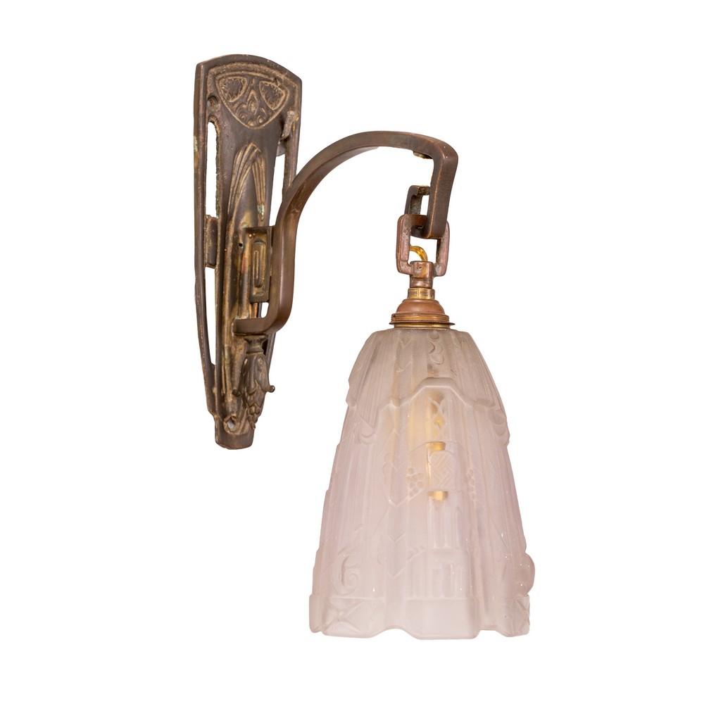 APPLIQUE Liberty in ottone con boccia in vetro.