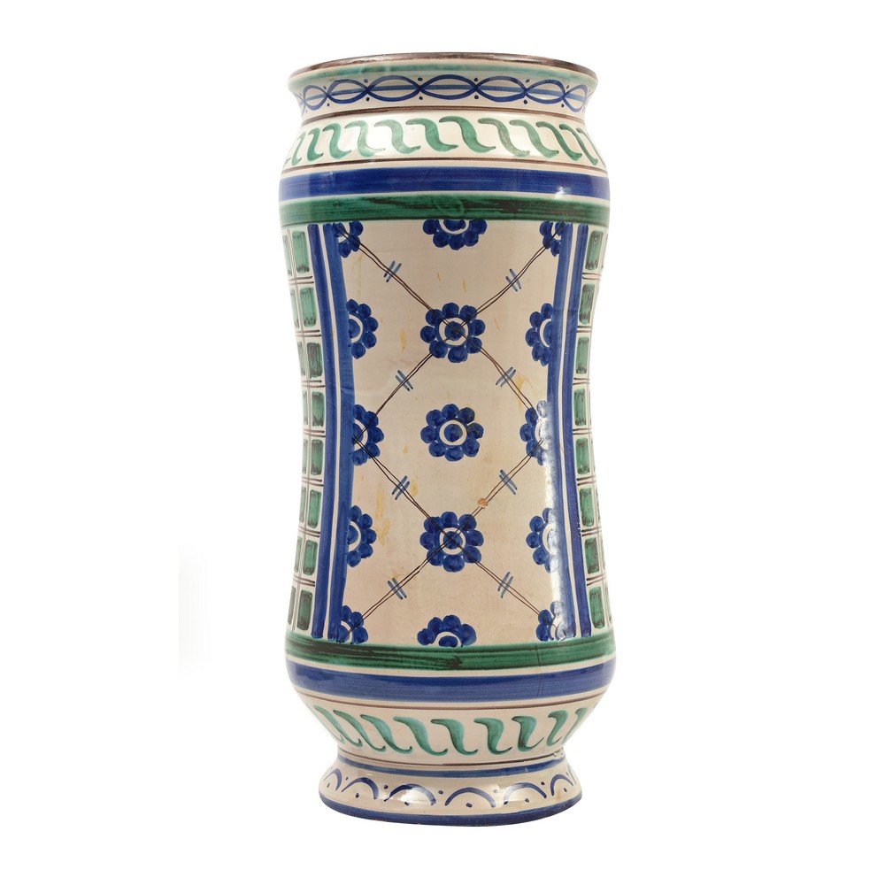 Grande cilindro in ceramica smaltata e decorata.