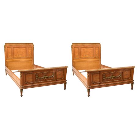 COPPIA DI LETTI in legno di acero e lumeggiature in oro.