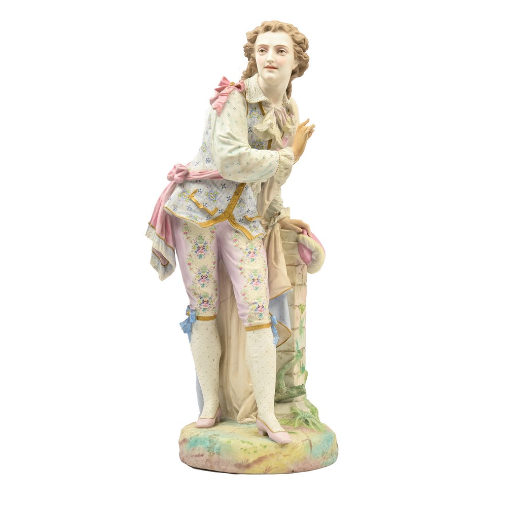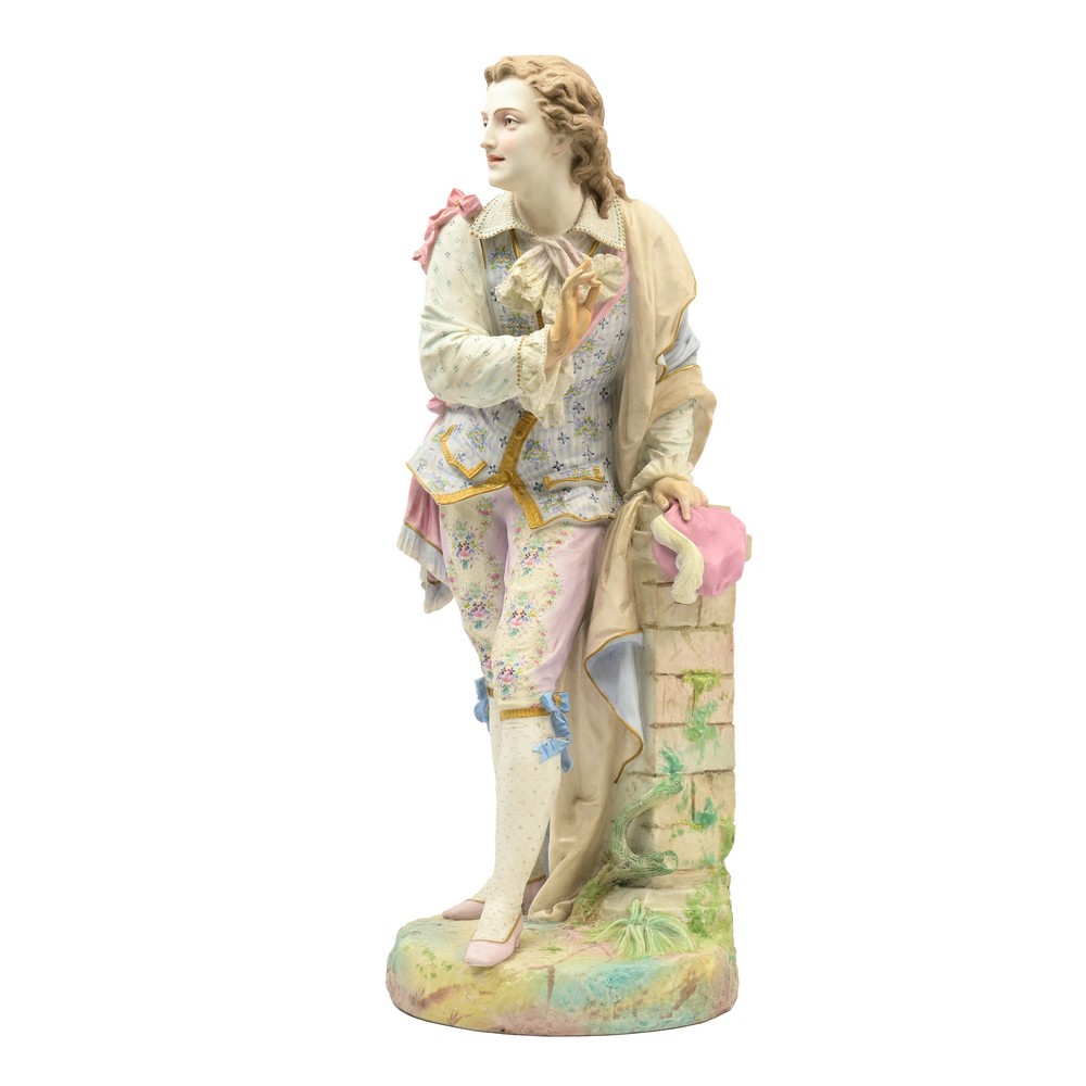 Scultura in porcellana policroma raffigurante "Damerino" (piccole sbeccature).