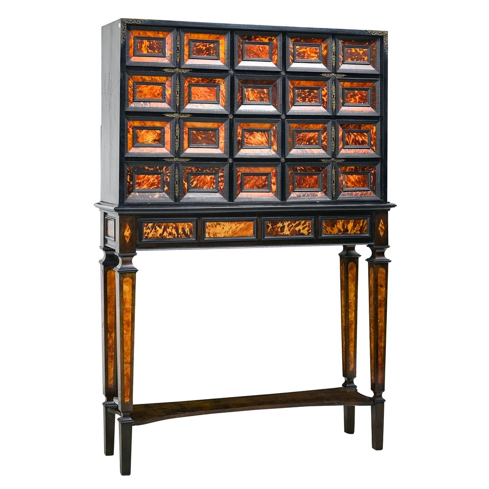 Monetiere con consolle non coeva del XIX secolo in legno ebanizzato ed applicazioni in tartaruga