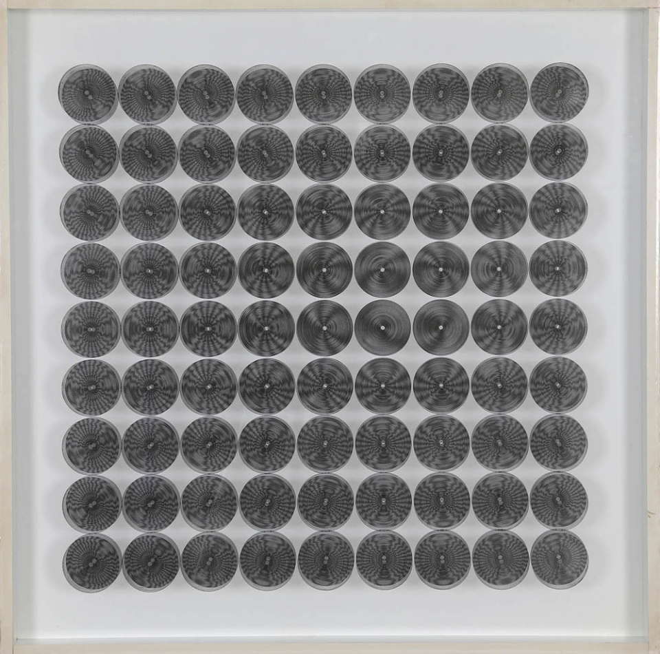 LUDWIG WILDING 1927 - 2010 " 25 ", 1967 Assemblaggio, serigrafia su tavola e plexiglass serigrafato, cm. 50 x 50 x 5 Firmato sul retro Opera n. 16/50 Prov. Collezione Privata
