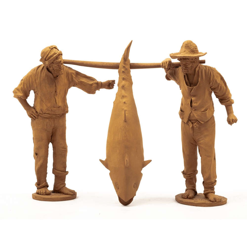 Gruppo in terracotta raffigurante "Pescatori ed un tonno".