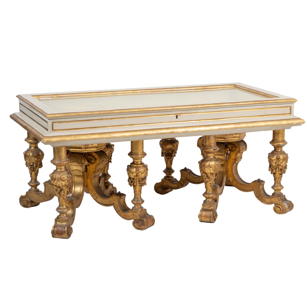Lotto 1189 | TAVOLINO/BACHECA in legno laccato e dorato