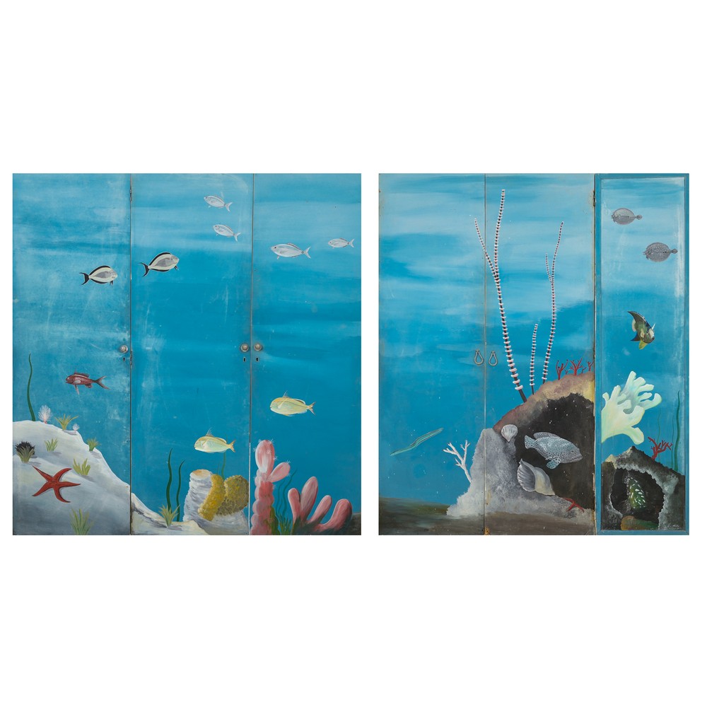 Sei pannelli in legno dipinto raffigurante fondale marino.
