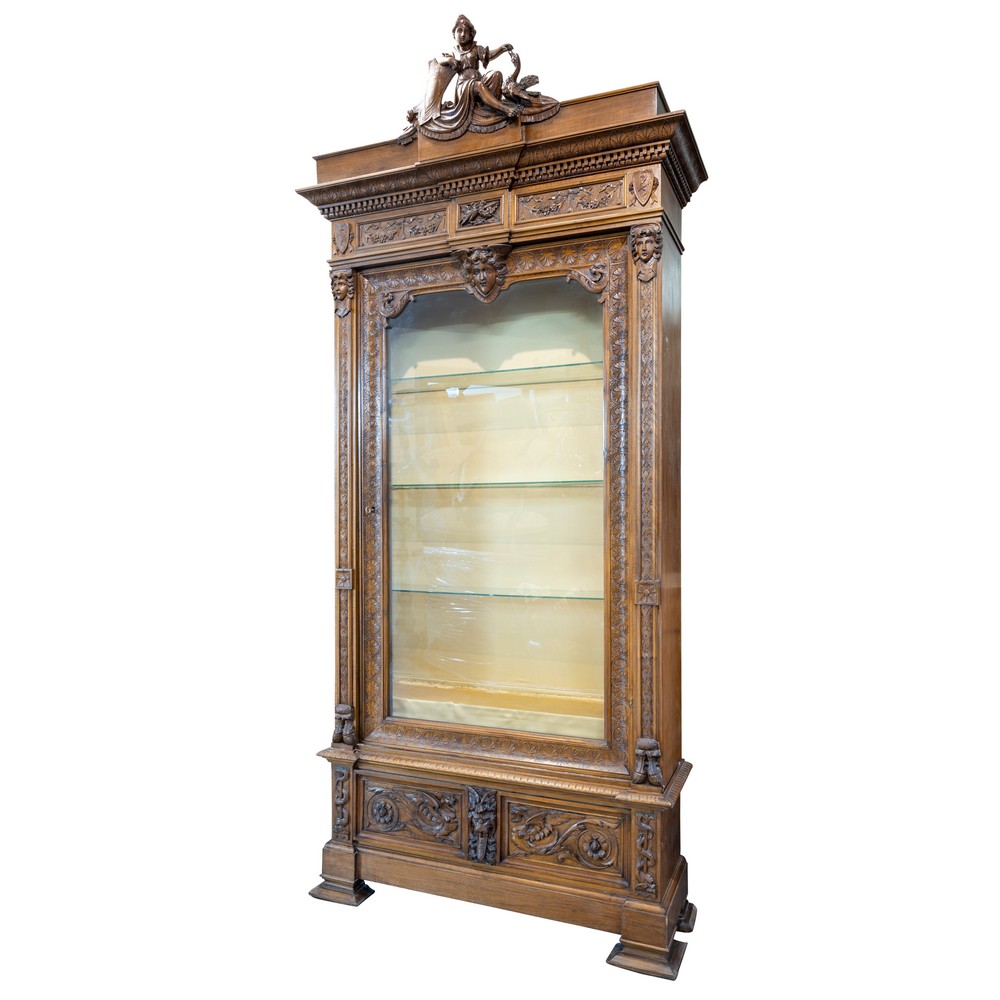 Vetrina Umbertina ad un'anta in legno di noce riccamente intagliato.