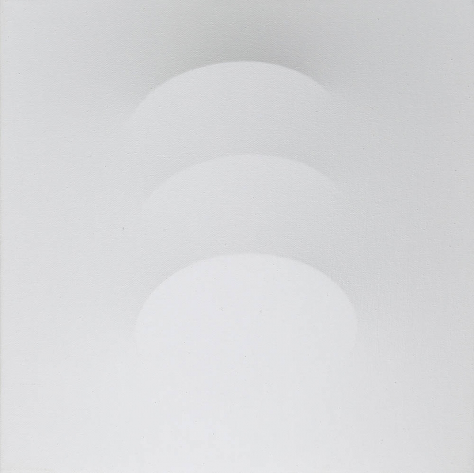 TURI SIMETI 1929 " Tre ovali bianchi ", 2013 Acrilico su tela sagomata, cm. 30 x 30 Firmato e datato sul retro Autentica dell'artista su fotografia Prov. Collezione Privata