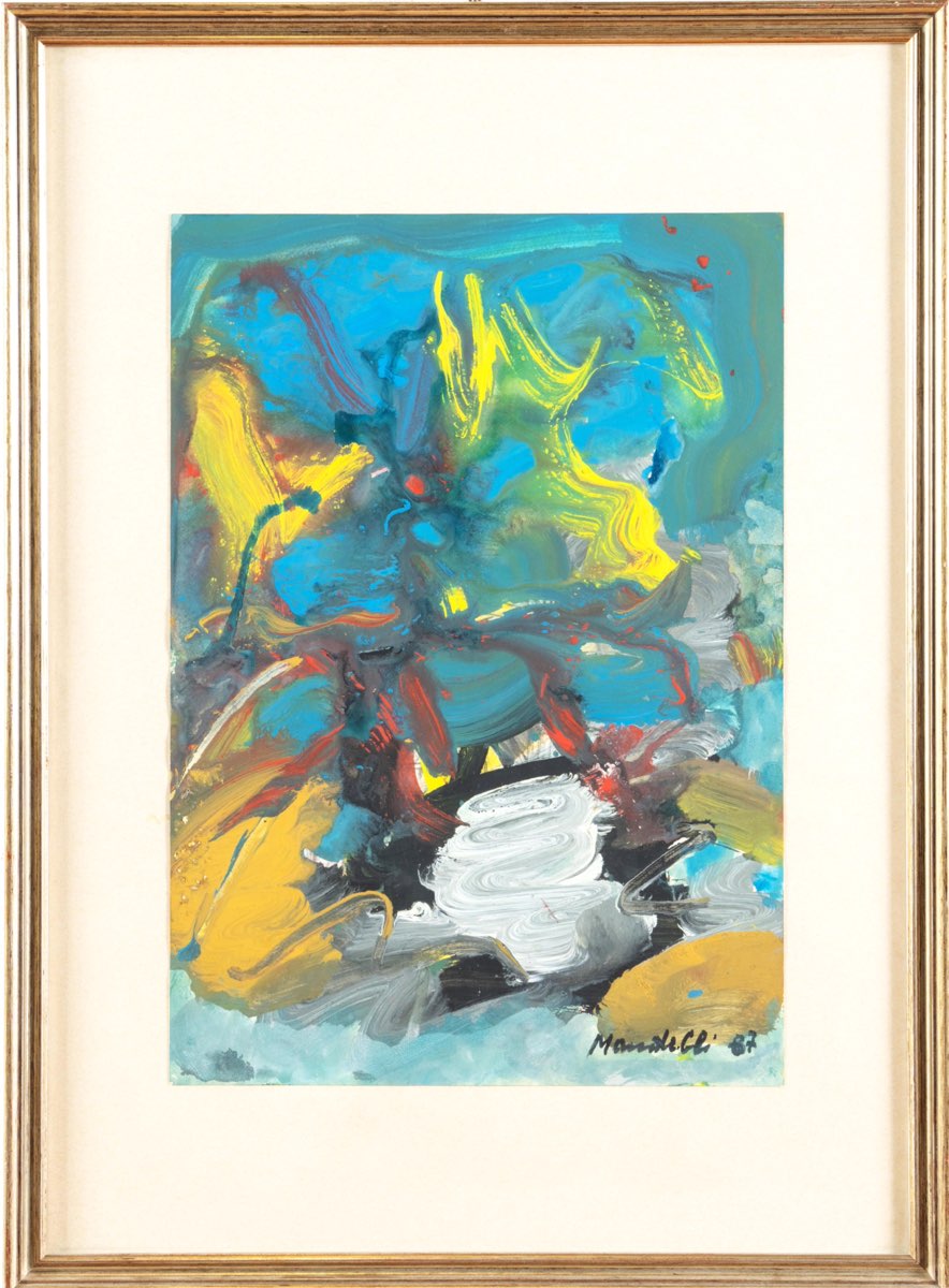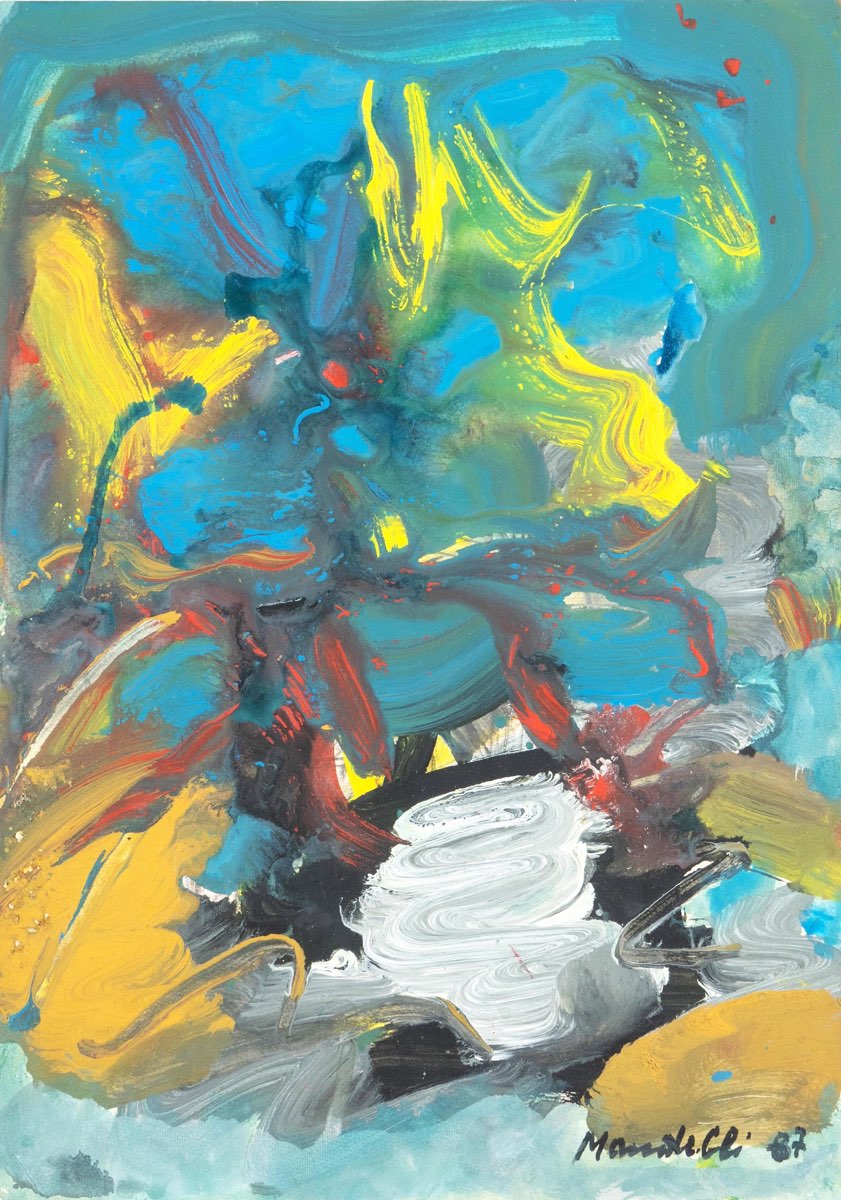 Pompilio Mandelli (Luzzara 1912 - Bologna 2006), “Senza titolo”, 1987. Olio su cartoncino, firmato e datato in basso a destra “Mandelli 87”, H cm 50x35