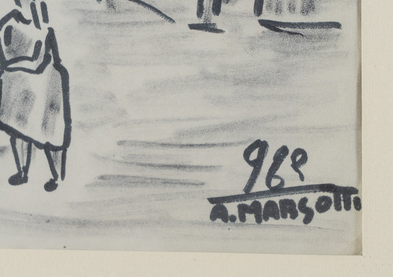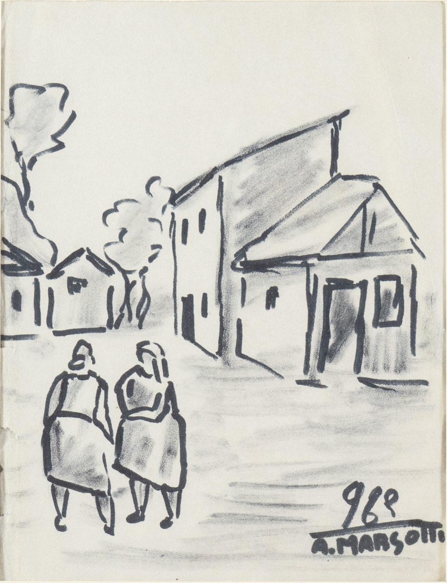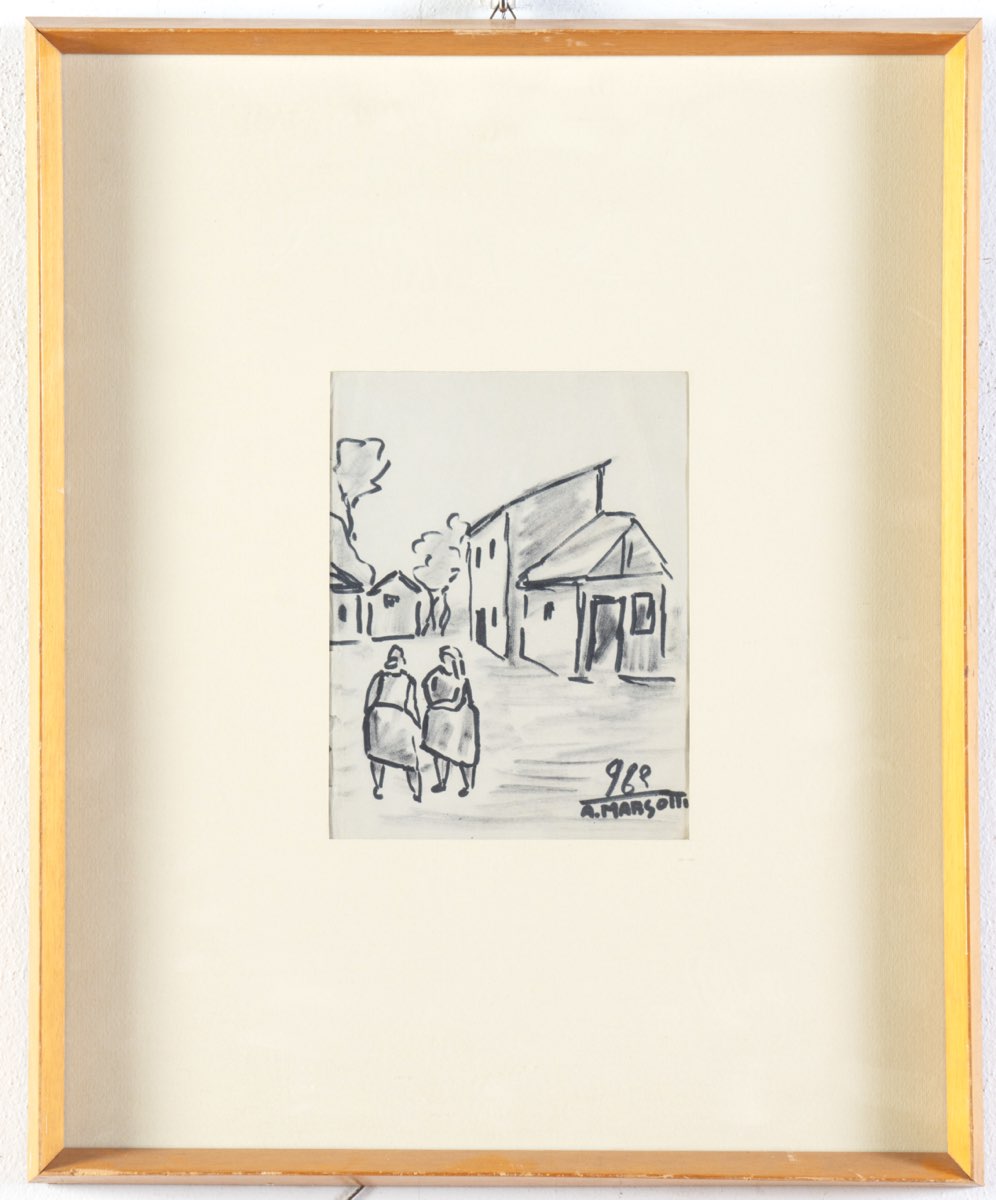 Anacleto Margotti (San Potito di Lugo 1896 - Imola 1984), “Scena di paese”, 1963. Inchiostro su carta, datato e firmato in basso a destra, H cm 21x16