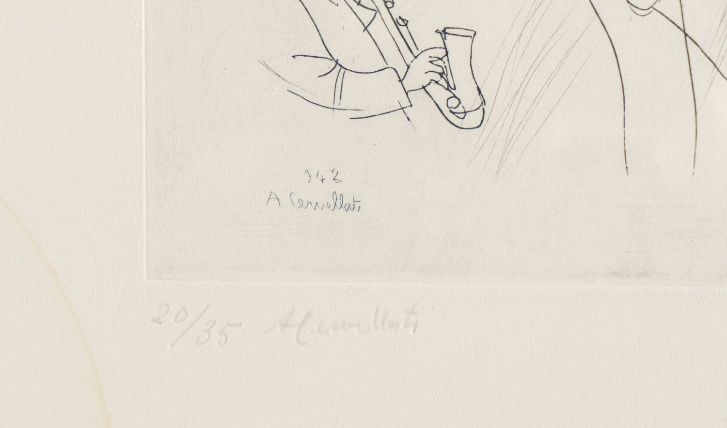 Alessandro Cervellati (Bertinoro 1892 - Bologna 1974), “Senza titolo”, 1942. Acquaforte su carta, presenta sulla lastra data e firma, reca in basso a sinistra numero di tiratura 20/35 e firma, Lastra H cm 18.5x16 (difetti)