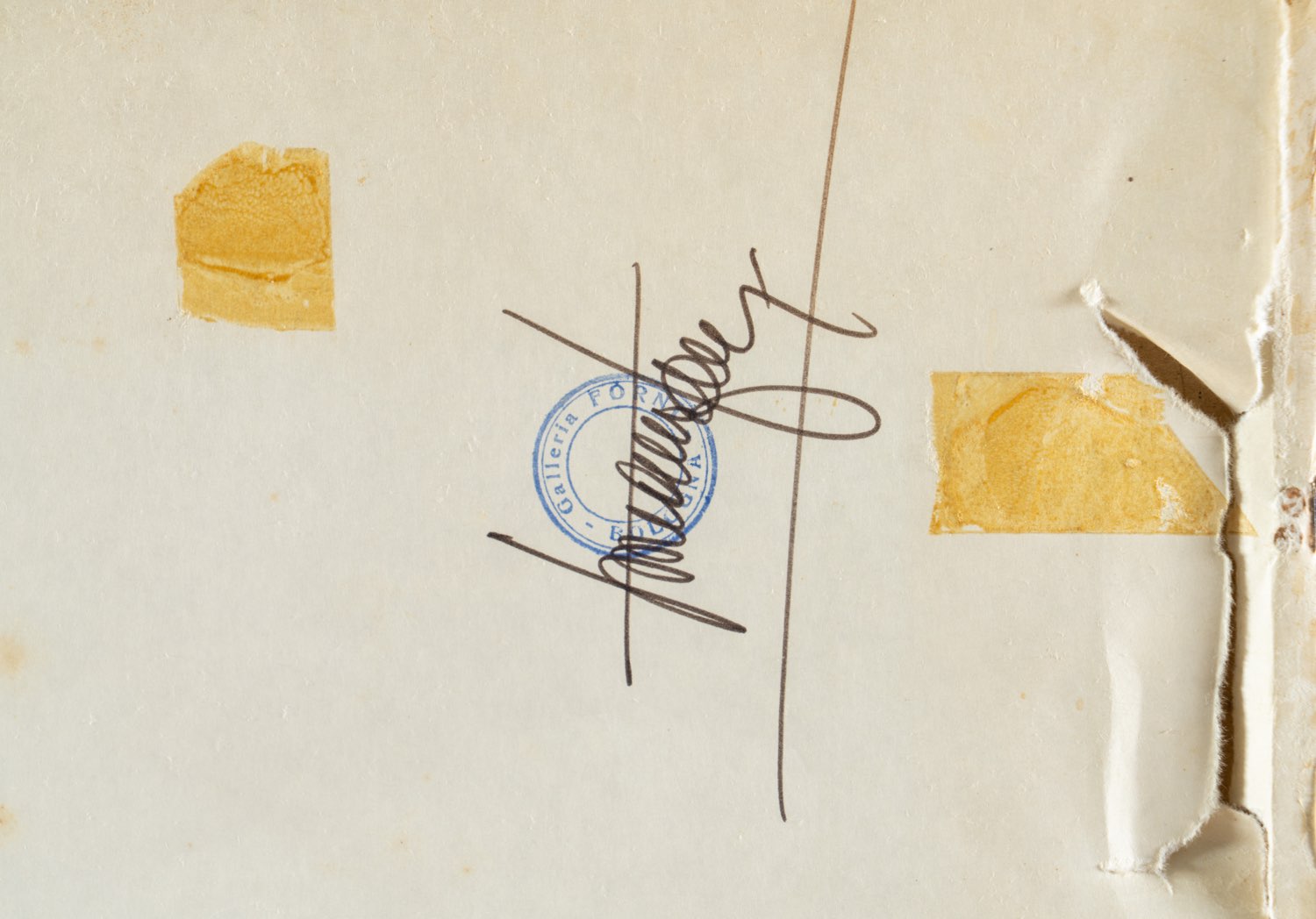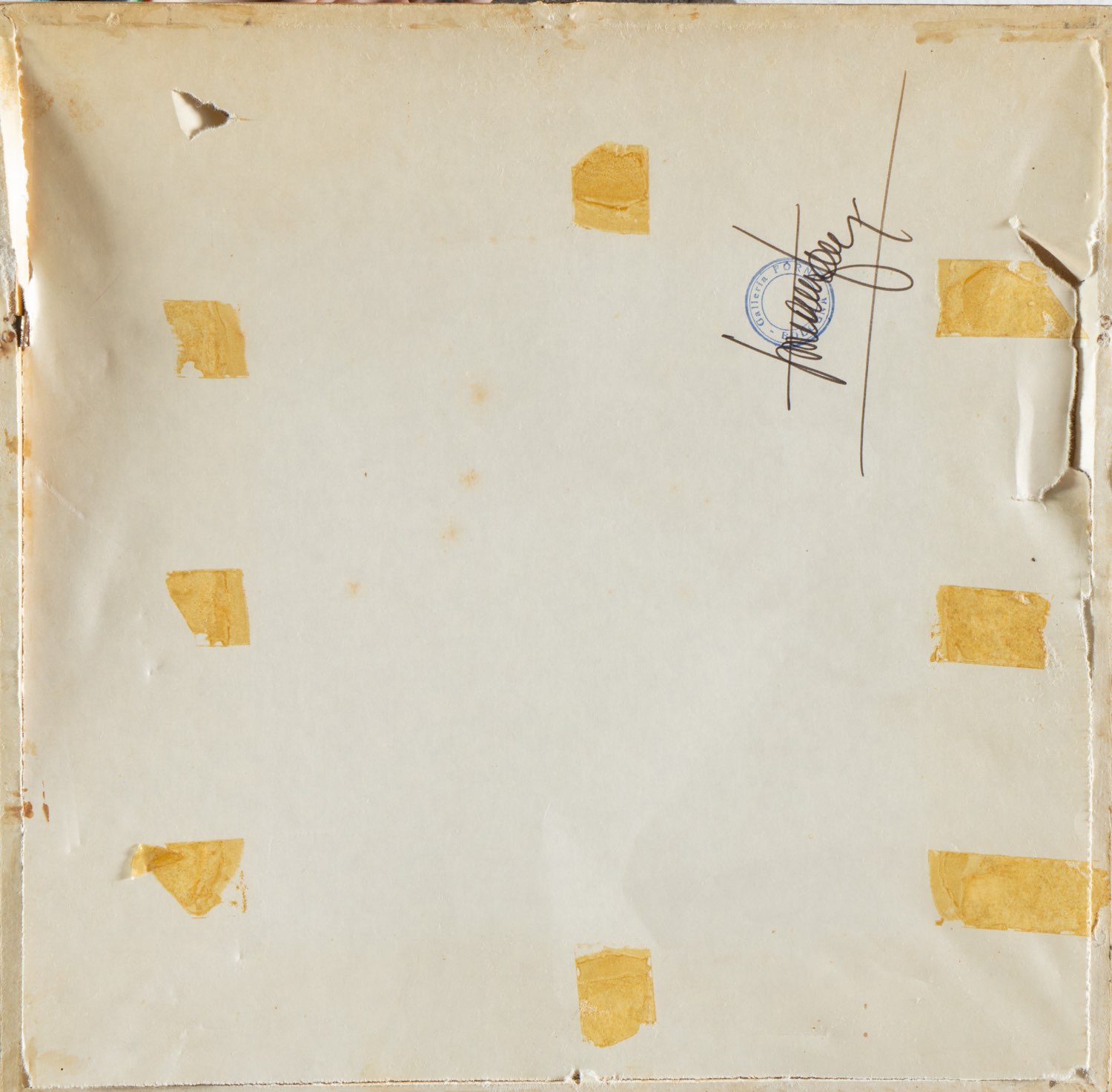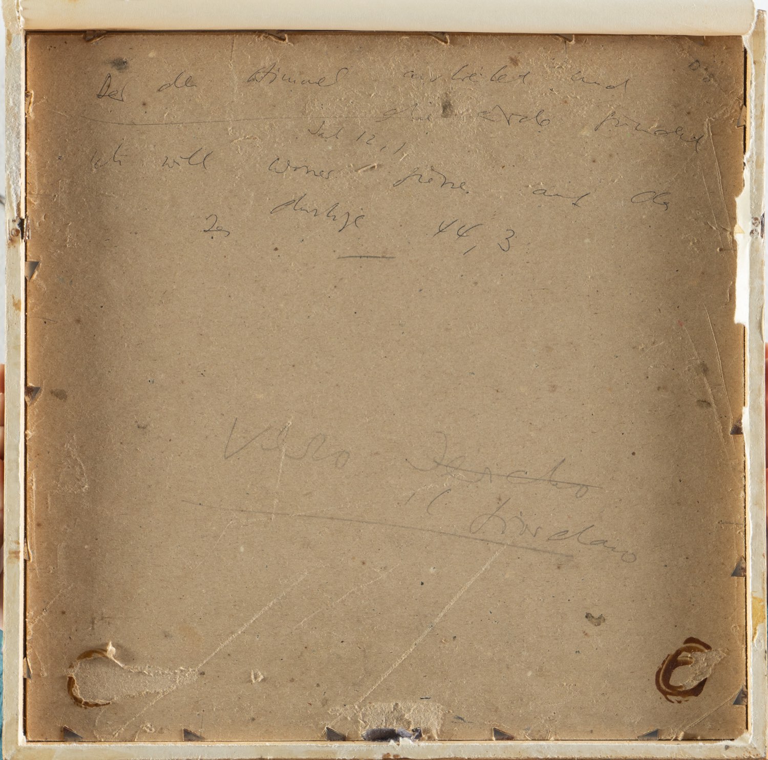 Anonimo del XX secolo, “Senza titolo”. Olio su tela, reca al retro timbro e firma della Galleria Forni - Bologna, H cm 17x19