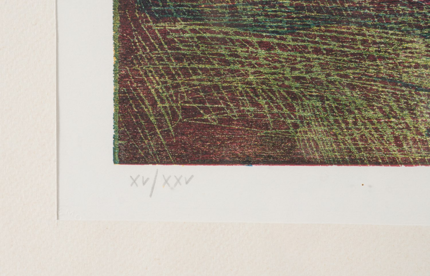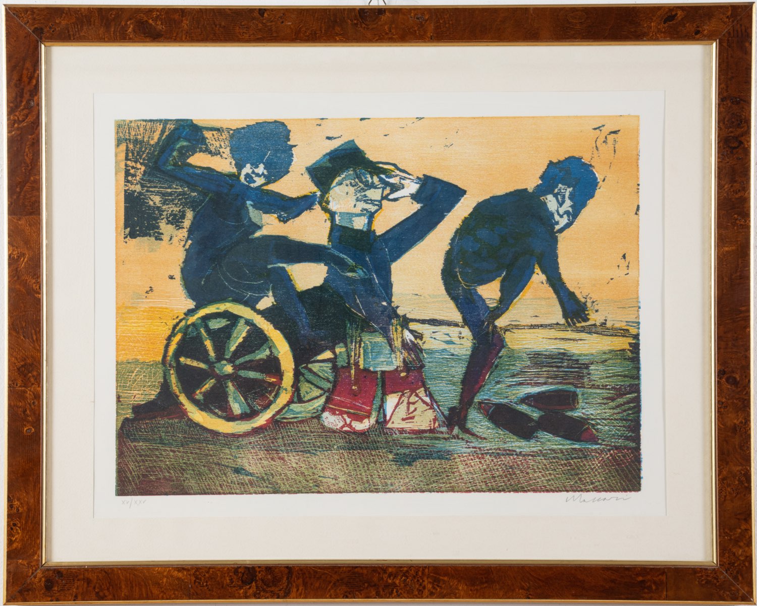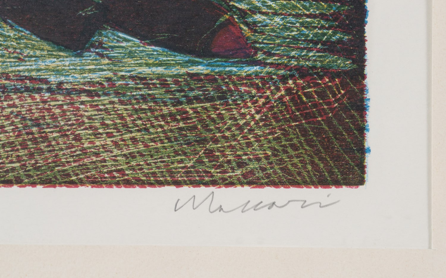 Mino Maccari (Siena 1898 - Roma 1989), “Senza titolo”. Litografia a colori su carta, firmata in basso a destra, numero di tiratura in basso a sinistra XV/XXV, Lastra H cm 39x55