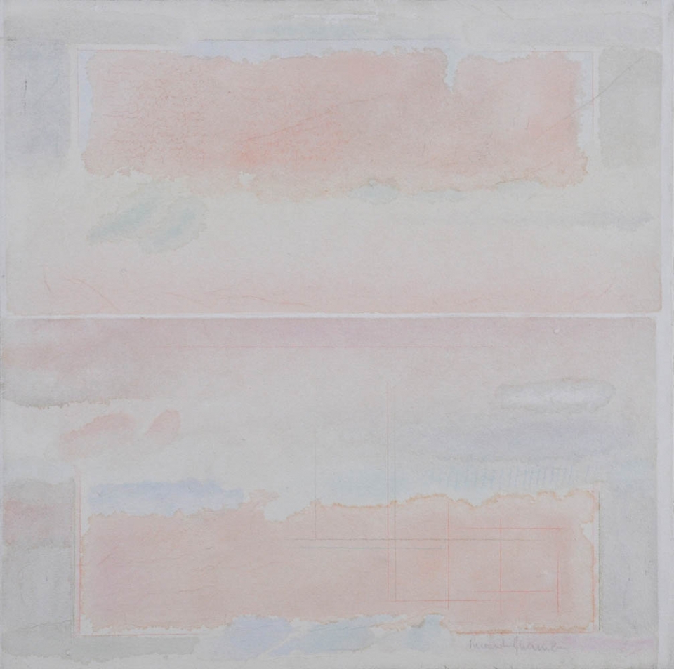 RICCARDO GUARNERI 1933 " Sperare nel rosa ", 1988 Tecnica mista su tela, cm. 50 x 50 Firmato e datato sul retro Etichetta Galleria d'Arte Edizioni Grafiche, Firenze sul retro Prov. Collezione Privata