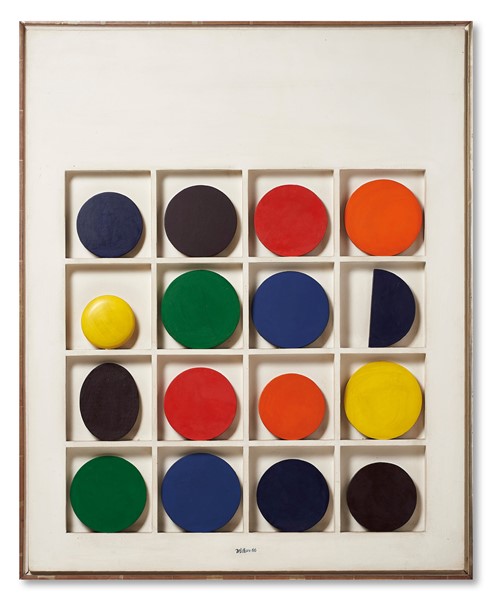 Lotto 50 | Lucio del Pezzo ( Napoli 1933 – Milano 2020) "Scala cromatica" 1966acrilico e assemblage di legni su tavola