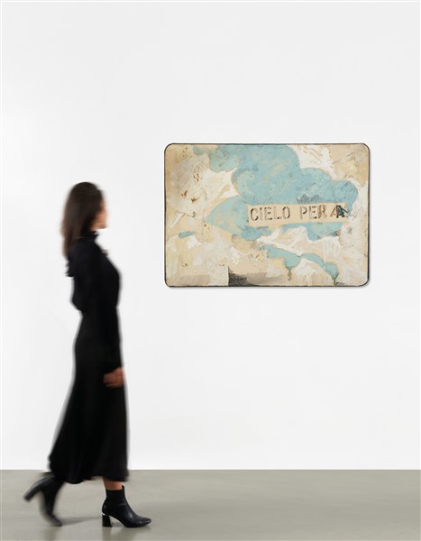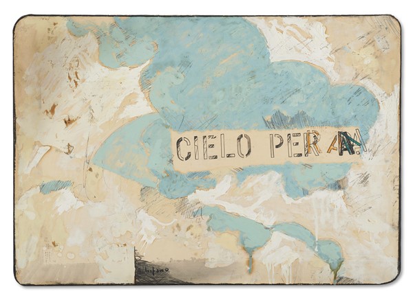 Mario Schifano "Cielo per A." 1964 smalto, grafite, matita e riporto di stampa a
