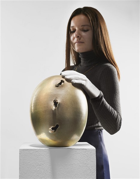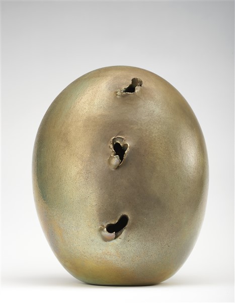 LUCIO FONTANA "Concetto spaziale" 1963-64 terracotta smaltata, lustrata e buchi