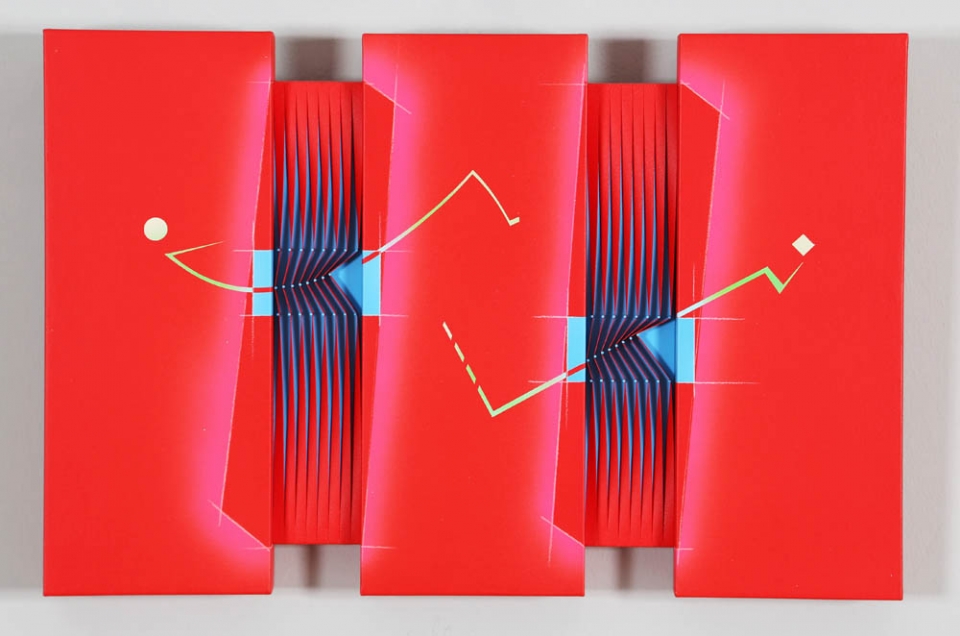 ALBERTO BIASI 1937 " Fachiri ", 2008 Acrilico e tecnica mista su tela, cm. 35 x 53 Firmato e datato sul retro Archivio Alberto Biasi n. AS 255 Prov. Collezione Privata