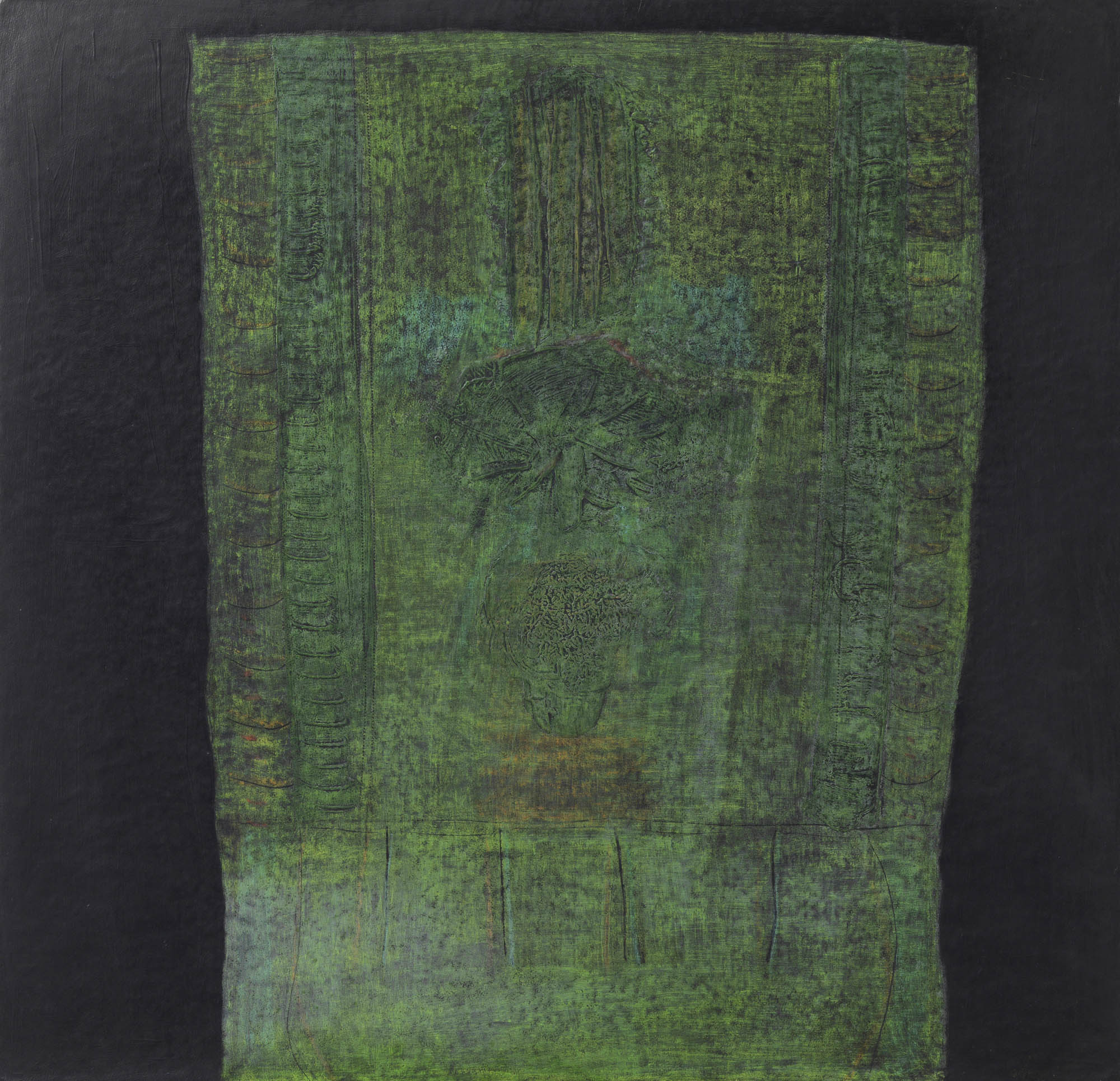 Tecnica mista su carta applicata su tavola, cm. 74,5 x 74,5