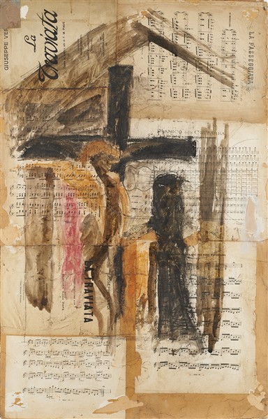 Lorenzo Viani "Studio per il Cenacolo" 1919 tecnica mista e collage su cartone a