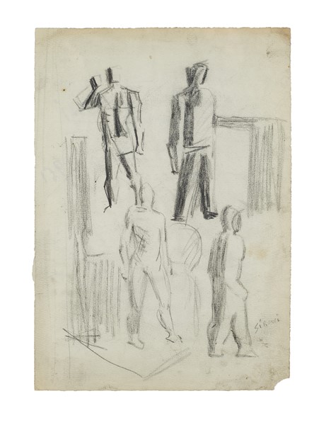 Mario Sironi "Studi di figure" 1932 circa matita grassa su carta cm 32,7x23,2 Fi