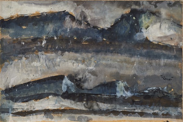 Mario Sironi "Montagne" prima metà anni '50 tempera, china e matita su carta in
