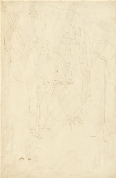 Ubaldo Oppi "Violoncellisti" 1917 china su carta cm 43,9x29,7 Firmato e datato 1