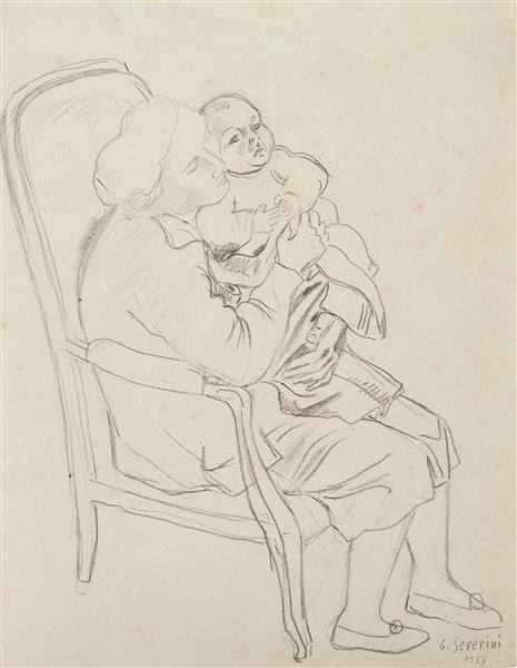 GINO SEVERINI "Maternità" 1927 matita su carta cm 22x17 Firmato e datato 1927 in
