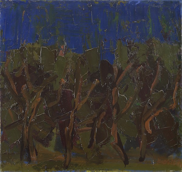 Ennio Morlotti "Ulivi a Bordighera" 1962 olio su tela cm 65x69 Firmato in basso