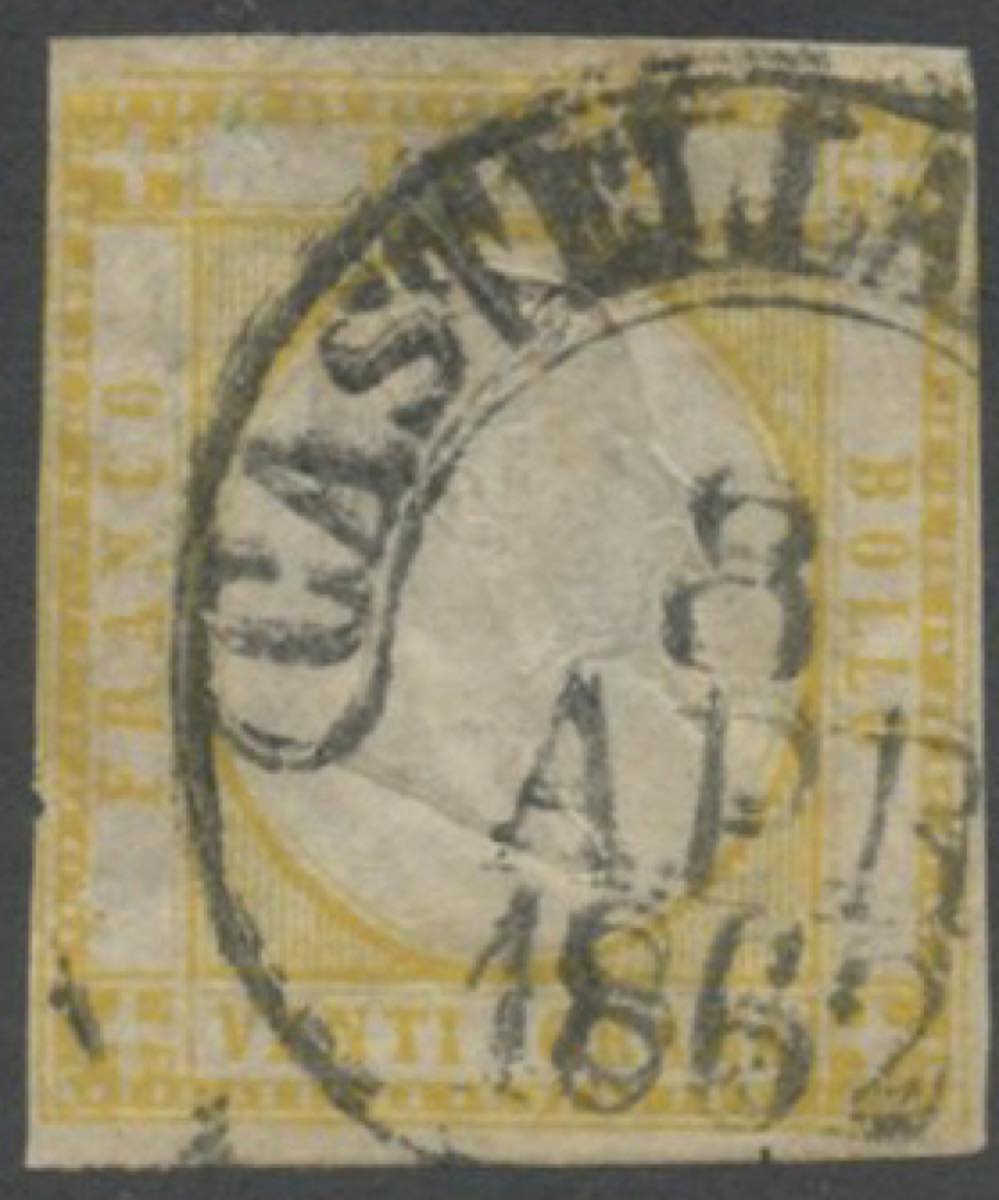 Lotto 55 | 1861, 20gr. Giallo N.23 usato con il cercio di Castellammare (7pt). Con...