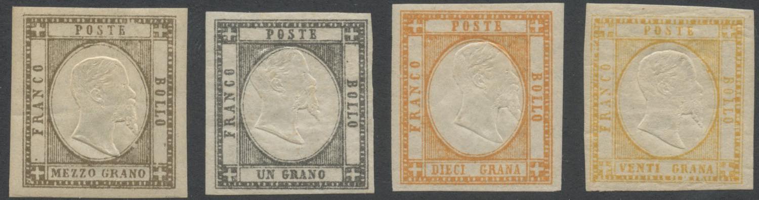 1861, N.18, 19a, 22, 23a nuovi, Linguellati. Notata tonalità interessante del 1/2gr. (A+) (Cert. Raybaudi della serie di provenienza)