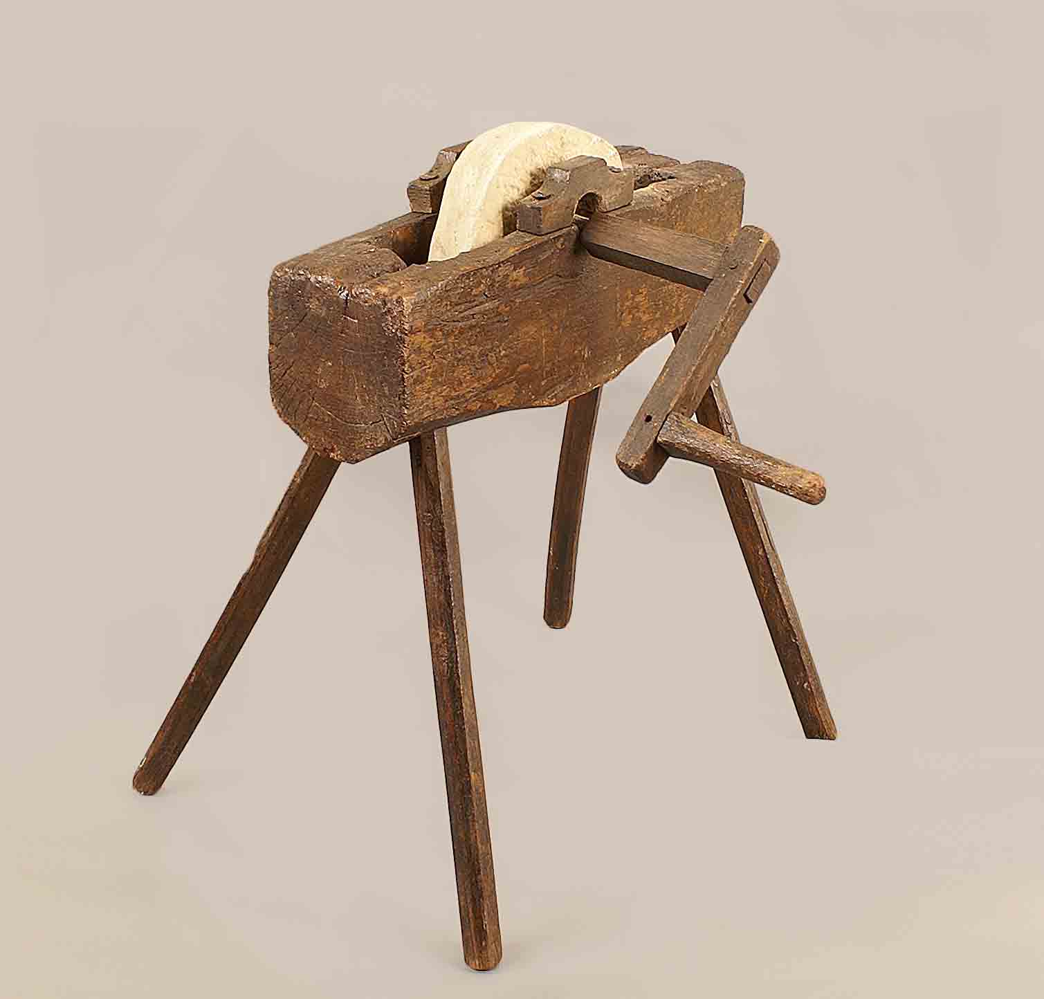 Lotto 440 | Antica mola ad acqua da arrotino in legno, cm. 53x45x42.