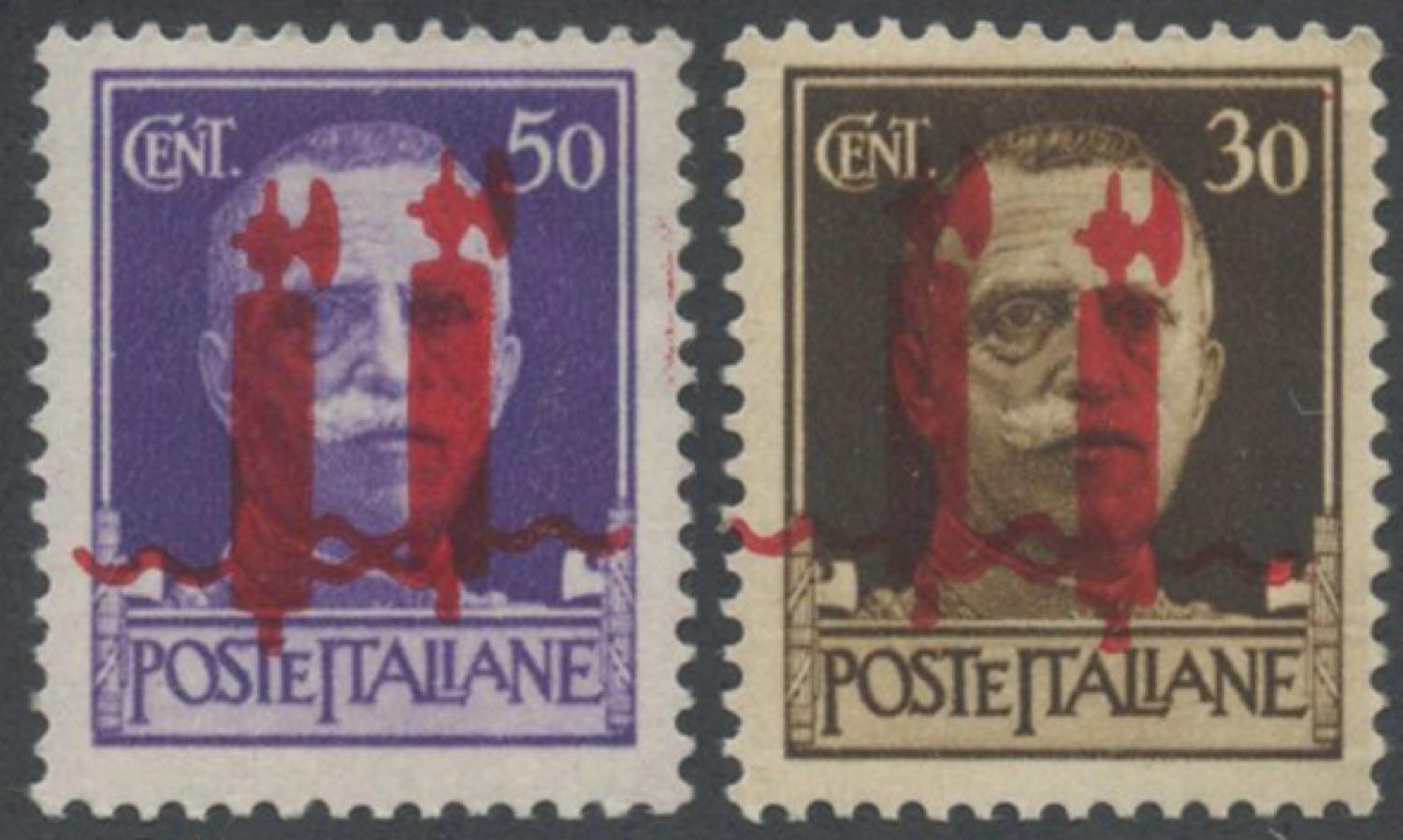 1944, R.S.I. - SAGGI 30Cent. e 50Cent. Con doppia impronta della soprastampa del tipo 'I' in rosso di verona, nuovi con gomma MNH.