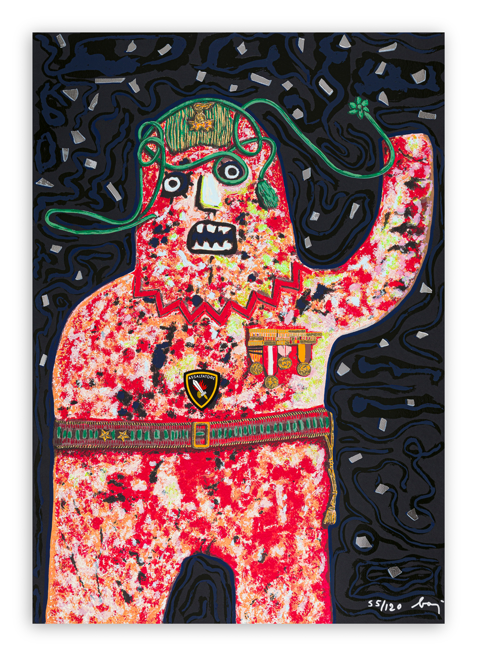 Firma e numerazione (Esemplare 55/120) a pennarello al fronte