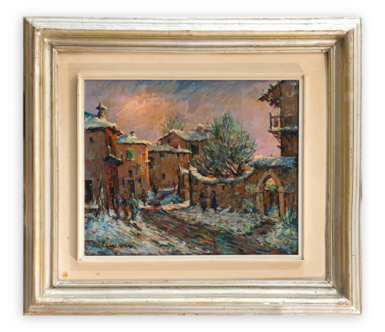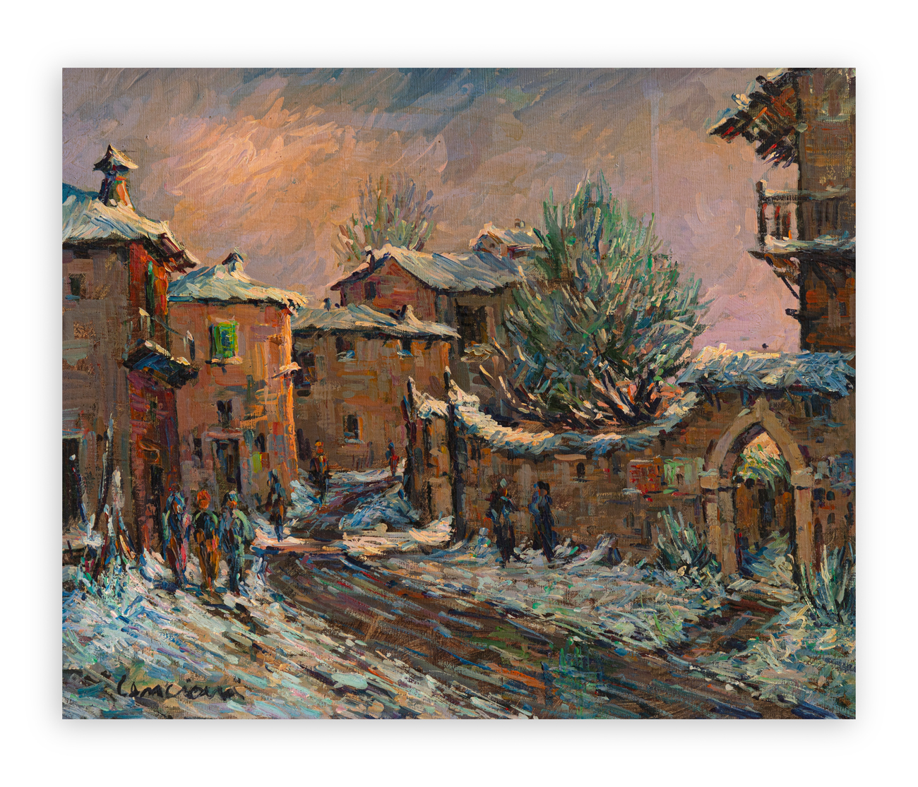 AMLETO CENCIONI (1906-1994) - Paese sotto la neve. San Lorenzo. Pizzoli, 1976