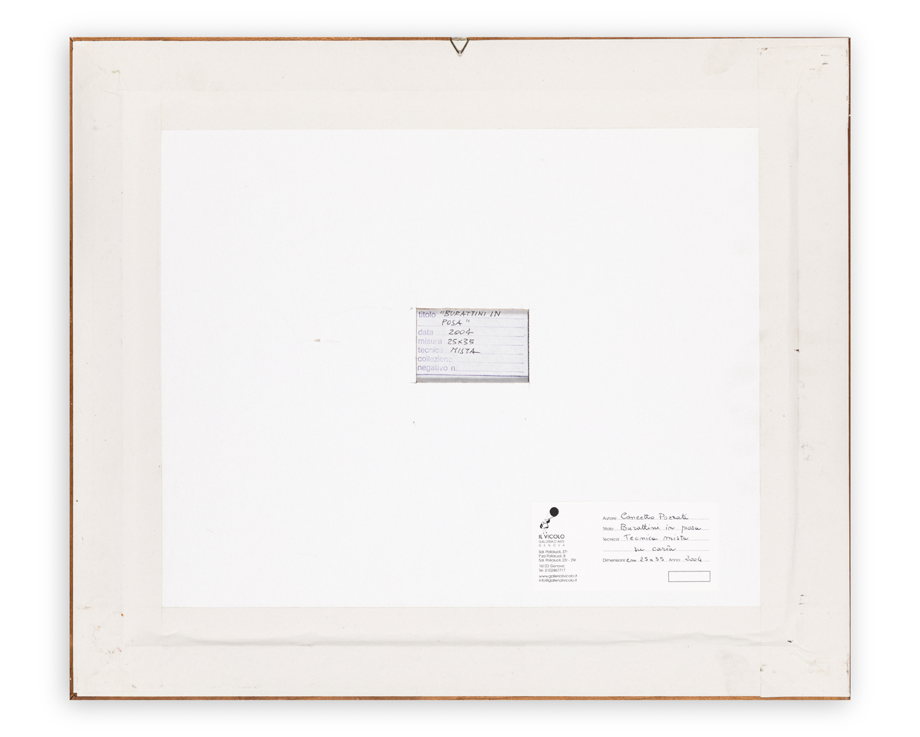 Etichetta della Galleria d'Arte Il Vicolo (GE) al retro della tavola protettiva