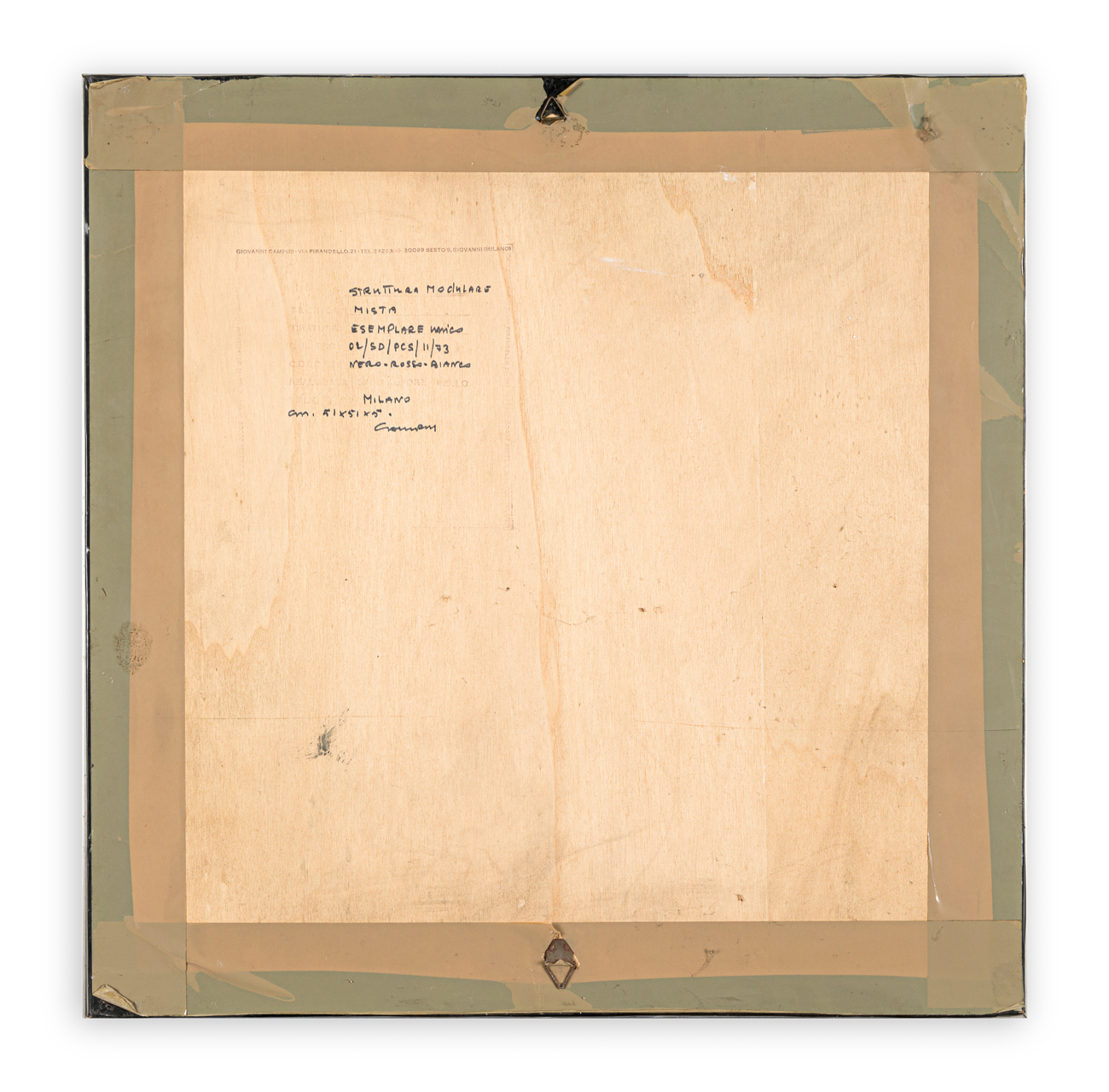 Firma e timbro dell'Artista con caratteristiche tecniche dell'opera al retro