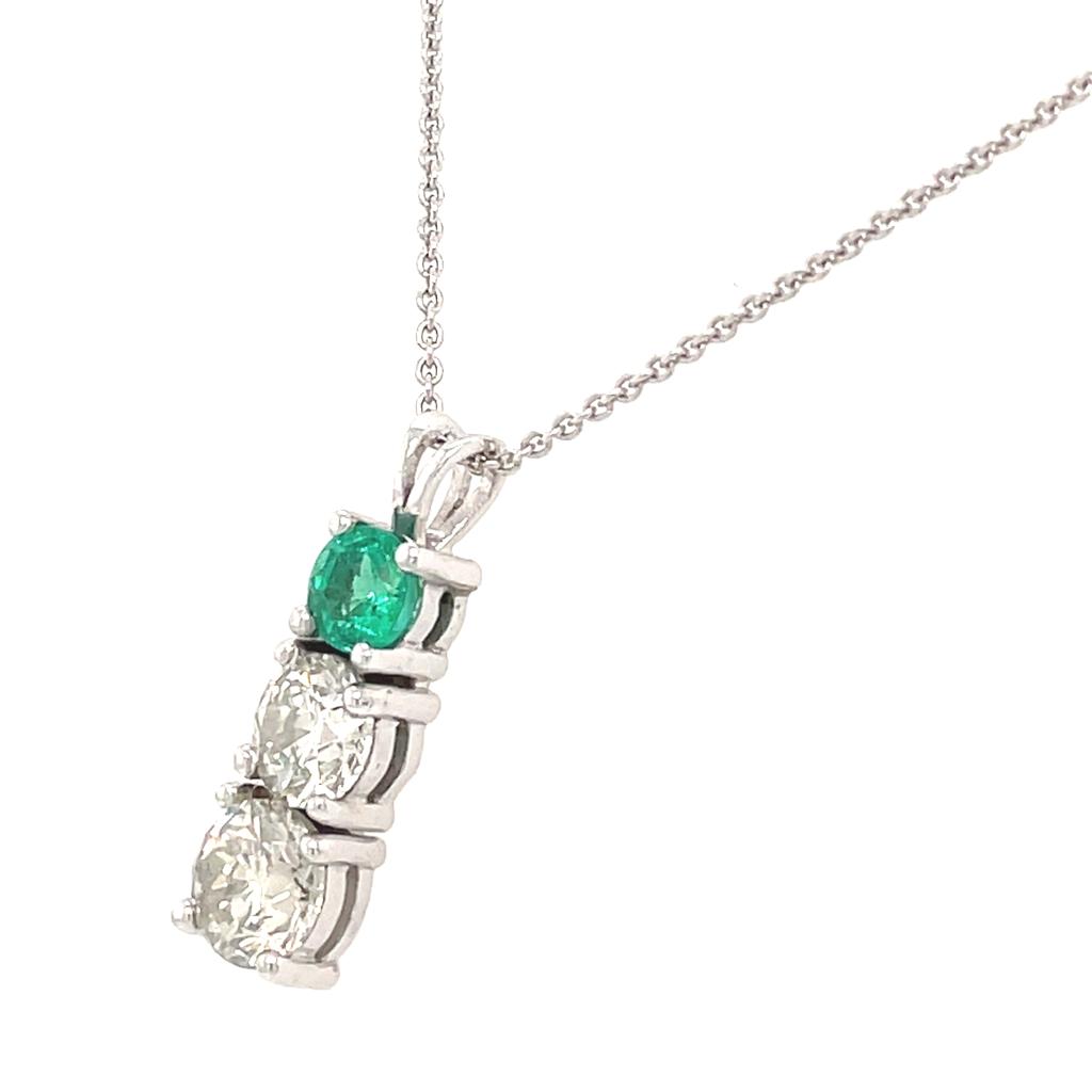 PENDENTE IN ORO BIANCO 14K 2.58 GRAMMI CON 2 DIAMANTI PER 1.14 CT TOTALI E SMERALDO PER 0.27 CT CERTIFICATO AIG - PND20508