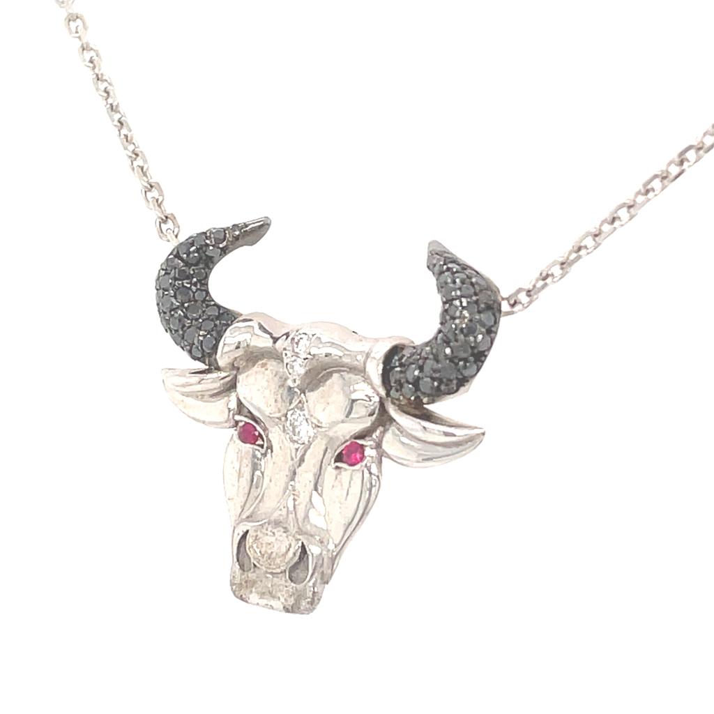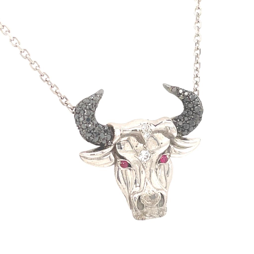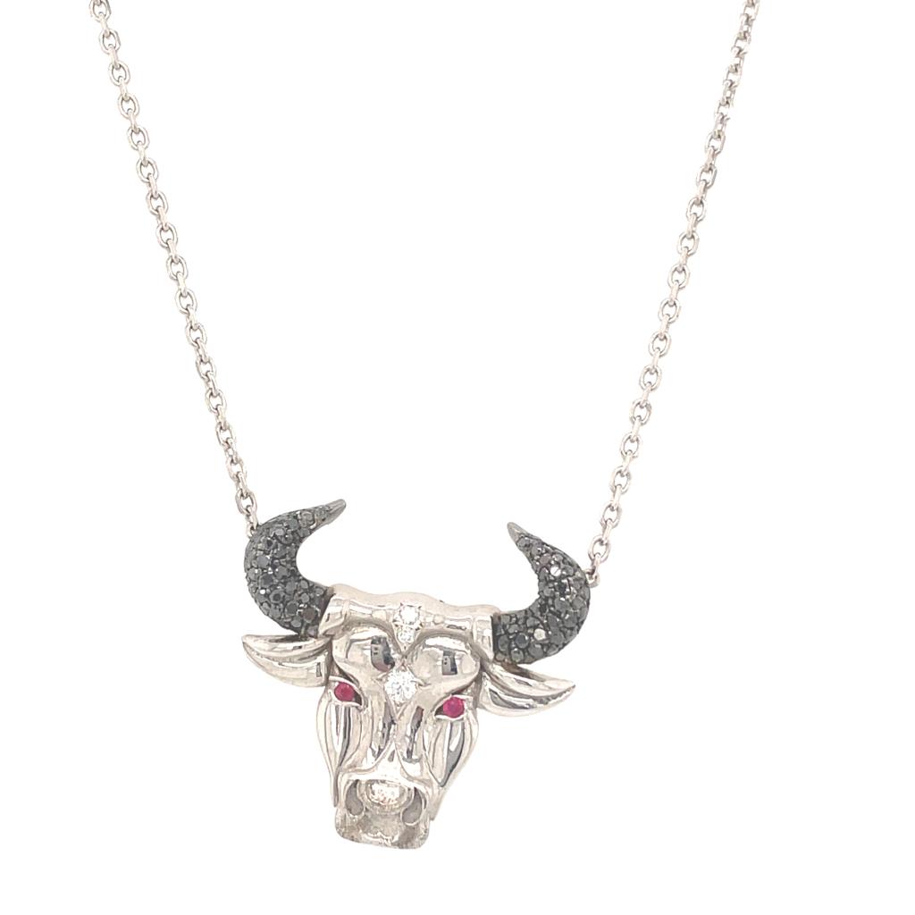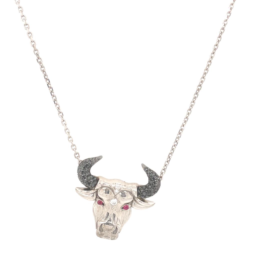 GIROCOLLO IN ORO BIANCO 14K 5.58 GR CON DIAMANTI E RUBINI TAURUS 0.56 + 0.03 CT - HM20203