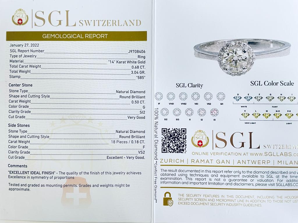ANELLO IN ORO BIANCO 14K 3.04 GR CON DIAMANTE 0.50 + 0.18 CT CERTIFICATO SGL...