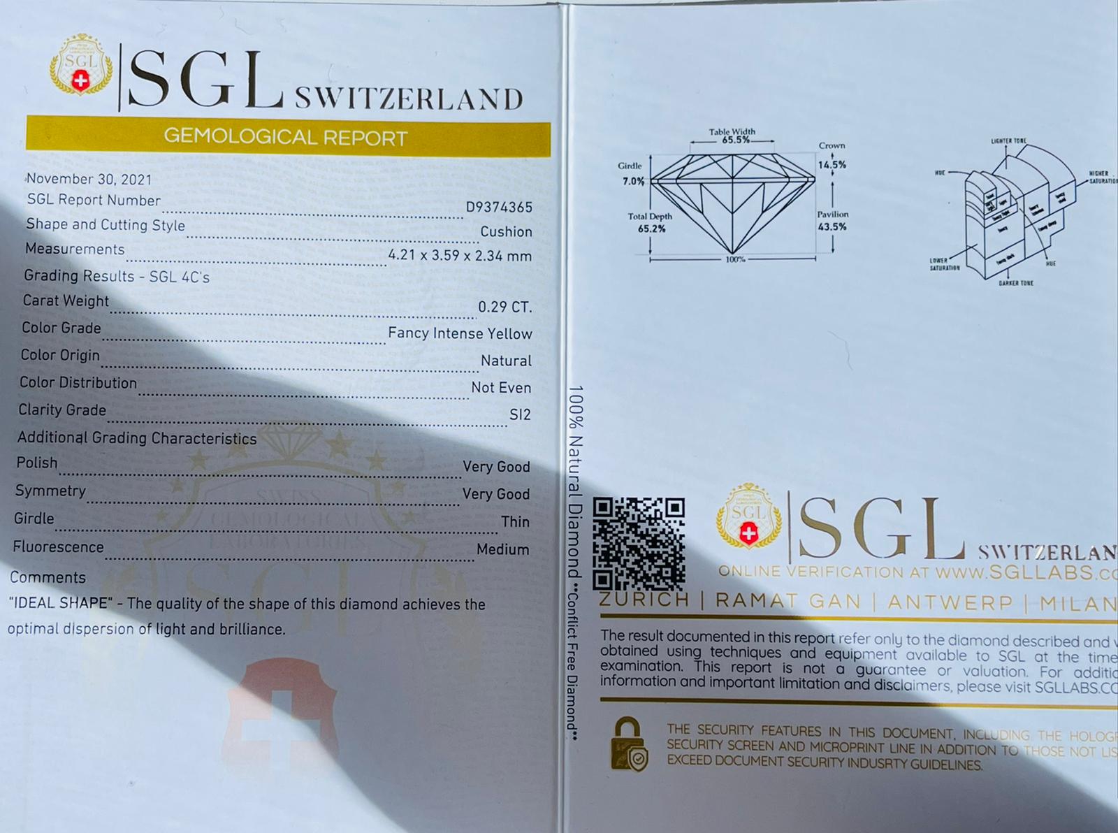 DIAMANTE 0.29 CT COLORE FANCY GIALLO INTENSO PUREZZA SI2 - UD10701-5I - U