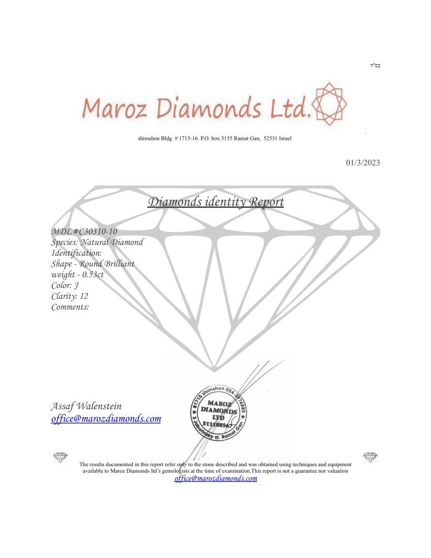DIAMANTE 0,53 CT J - I2 - TAGLIO BRILLANTE - CERTIFICATO ID - C30310-10